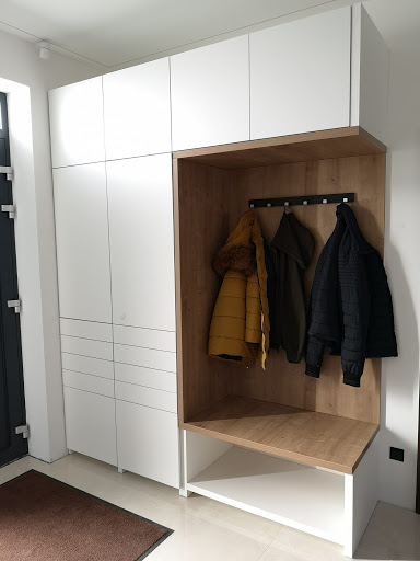 Pre tých, ktorí sa chcú posadiť pri obúvaní alebo vyzúvaní topánok, je táto zostava na sedenie prínosom. Okrem toho sedenie poskytuje vynikajúce miesto na krátke odpočinutie a čakanie, kým sa členovia rodiny pripravia pred odchodom z domu. V závislosti od dizajnu by samotné sedenie mohlo ponúkať skryté úložné priestory, čo prispieva k priestorovo úspornému dizajnovému konceptu. Z estetického hľadiska môže vstavaná skriňa a sedačka v predsieni zlepšiť prostredie vášho domova. Dizajn skrine môžete štylizovať tak, aby ladil s témou vášho domova – či už je moderná minimalistická, rustikálna alebo klasická. Okrem toho môže byť sedenie čalúnené vhodnou látkou alebo kožou, čo sa viaže na celkový dizajn. Dobre zvolené svietidlo môže osvetliť vstavanú skriňu a sedenie, čím sa stanú ústredným bodom vašej chodby a zároveň osvetlia priestor. Rovnako môžete zvoliť dvere na vstavanú skriňu so zrkadlami, ktoré vytvoria ilúziu priestrannejšej predsiene. Na záver možno povedať, že integrácia vstavanej skrine so sedením do predsiene je nielen praktická a šetrí priestor, ale môže výrazne zvýšiť estetický dojem vášho domova. Vnáša štýl, pohodlie a všestrannosť do priestoru, ktorý sa vo všeobecnosti považuje za prechodný, a mení predsieň na funkčný a príjemný prvok vášho domova.